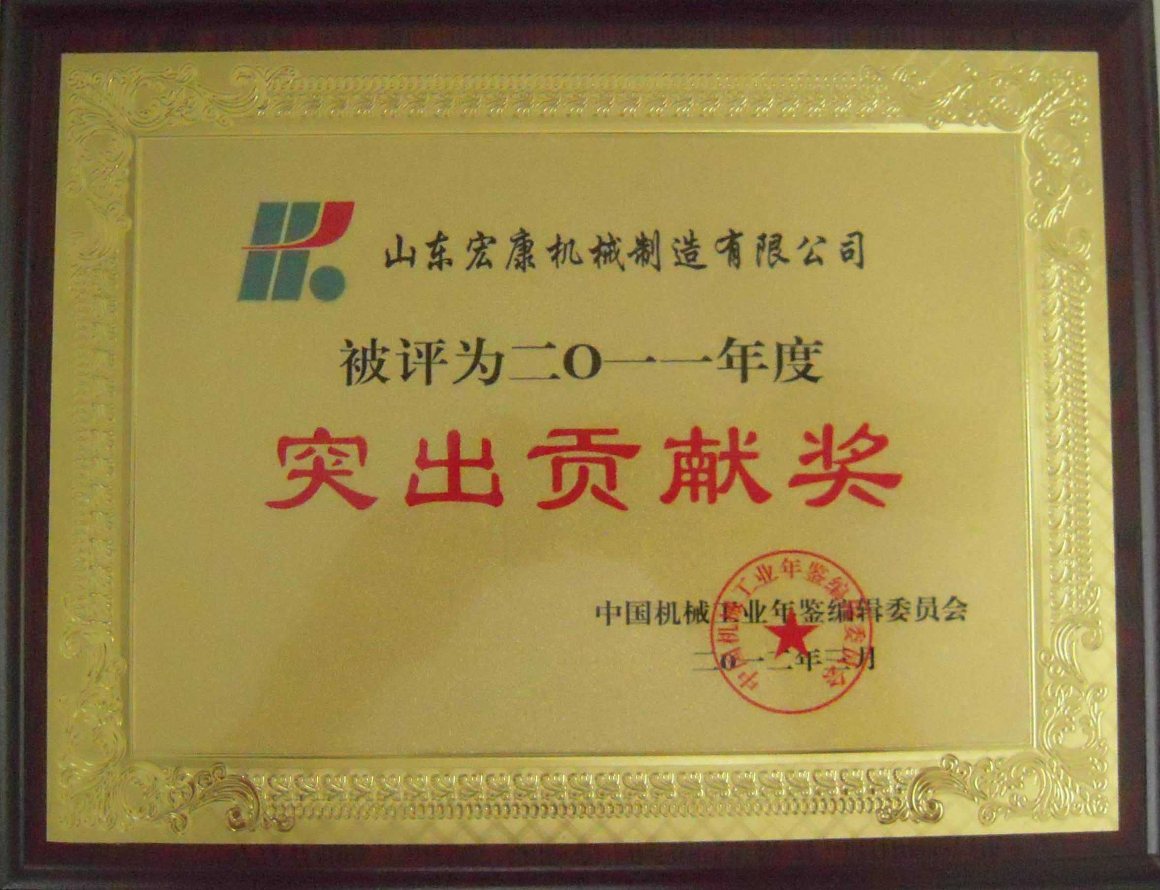 近日,我集團被中國機械工業年鑒編輯委員會授予“2011年度突出貢獻獎”。
